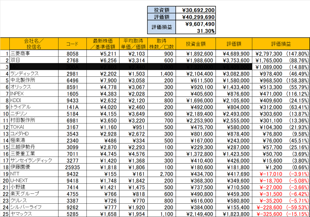 今週は、日経平均は3.2%程度の下落ですが、マイPFは2.0%程度の下落と久々に日経平均を上回りました。が、先週含めて約7%程度の下落。額として170万円ほどの下落です。まじで勘弁してくれ。もう言う事無し。