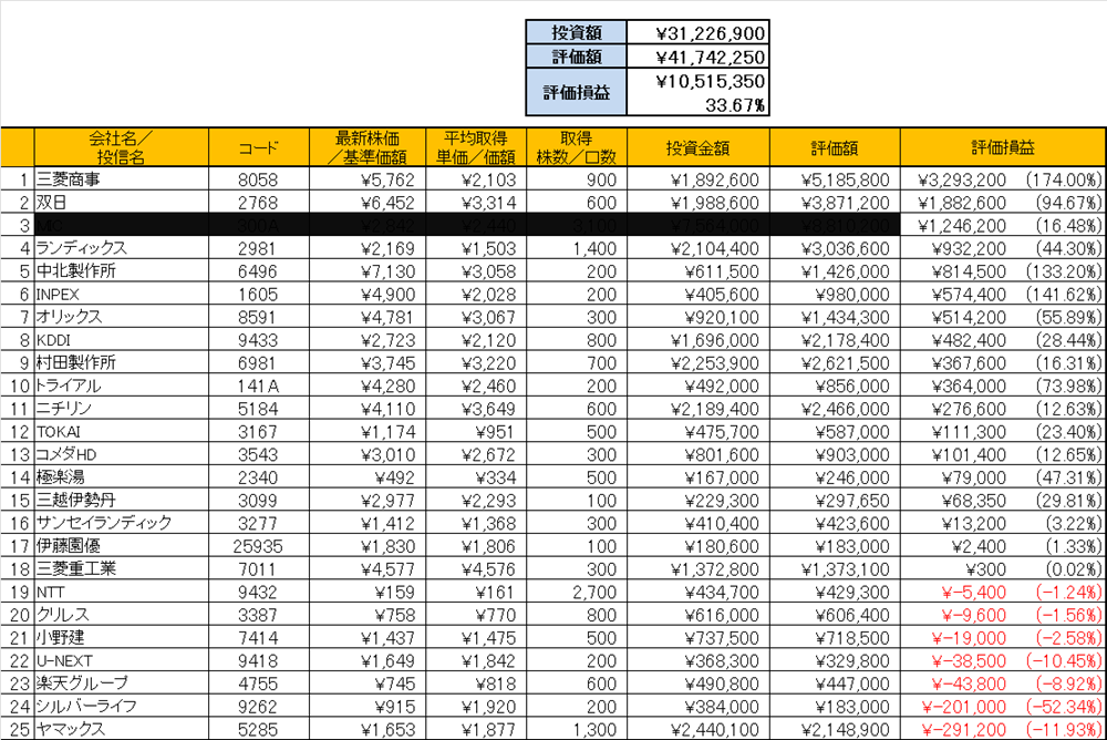 - 三菱商事(配当のみ)
