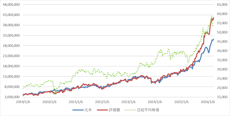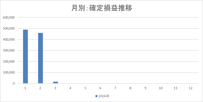 2026年2月末と確定損益含めて比較すると-839,150円(-4.51%)です。日経平均株価は9%程度の下落でしたので、まだ耐えた方だったかなと。