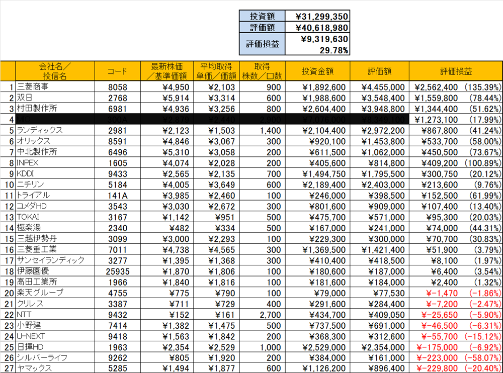 ついにヤマックスを一部損切りしました。もともと1,300株ほど保有していましたので、700株の損切りとし、残りは600株です。損切りしたにも関わらず、マイPFの中でも今でも含み損No.1銘柄です。3月末の権利確定後にでも損切りしておけば…