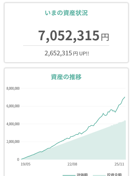 tsumiki証券(つみき証券)で87ヶ月目(2025年11月末)までの資産推移