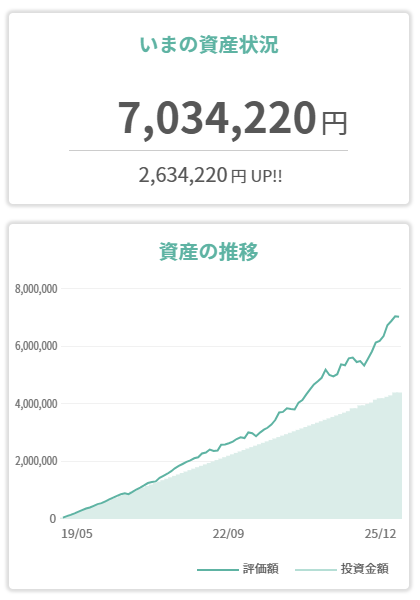 | 85ヶ月目 | 4,250,000 | 6,720,660 | 2,470,660 | 58.1% |